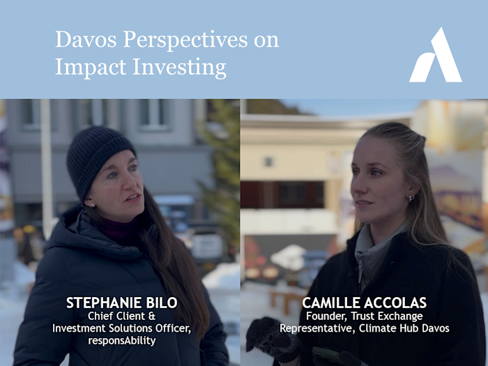 Recorded at the World Economic Forum in Davos, this short podcast episode explores how investor thinking is shifting in a rapidly changing global landscape. Hosted by Camille Accolas (Founder, Trust Exchange / Representative, Climate Hub Davos), the conversation features Stephanie Bilo, Chief Client & Investment Solutions Officer at responsAbility, sharing insights from her investor dialogues on Emerging Markets, Private Capital and Impact.